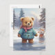 O urso Bea criou um amigo de neve legal. Adorável urso de pelúcia todo vestido para o inverno se divertindo ao ar livre. Imagem detalhada é aprimorada pelo uso de cores suaves. Ótimo tema para uma celebração de inverno. Parte da coleção Winter Friends.