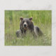 Cartão Postal Urso castanho na grama, urso pardo do Alasca