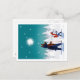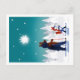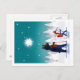 Cartão Postal Urso Cinto e Raposa esquiando sob estrelas em uma