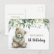 Cartão-postal de aniversário de urso água-forte boho fofo para qualquer idade com folhas verdes e folhagens. Personalize com seu nome e texto.