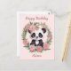 Cartão Postal Urso de Panda Adorável com Flores