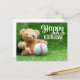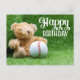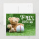 Cartão Postal Urso de pelúcia de aniversário de beisebol na gram
