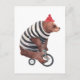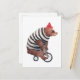 Esta design apresenta uma ilustração aquosa de um urso numa bicicleta vestindo um suéter listrado e um chapéu vermelho.