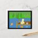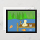 Um ursinho bonitinho sentado num cais com sua vara de pesca. Parece que ele pegou um peixe! As cores brilhantes acentuam este cartão postal divertido.