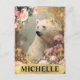 Linda Aquarela Vintage Urso Polar Branco e Rosas Rosa design floral com moldura de folhas douradas