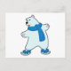 Cartão Postal Urso polar no Esqui no gelo com cachecol