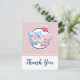 Cartão de agradecimento de festa com uma imagem de desenho animado fofa de um casal de ursos, a ursa é rosa pastel com um laço e está beijando a bochecha de um urso azul que parece positivamente encantado. Um pequeno coração rosa está flutuando acima de suas cabeças. Muito fofo e kawaii. O padrão de fundo é uma cor rosa suave com bolinhas brancas. Mensagem personalizada no verso.