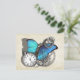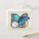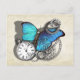 Um excelente de punk a vapor com uma borboleta azul-lacrimogênea, relógio de bolso prateado, correntes e engrenagens. Parece fabuloso nestes cartões postais.