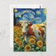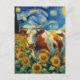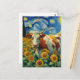 Cartão Postal Vaca Branca Marrom num Campo Faux Van Gogh Sunflow