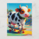 Cartão Postal Vaca Colorida e Divertida de Skate Surreal