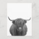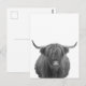Cartão Postal Vaca das Terras Altas Escócia Preta Branca Rústica