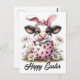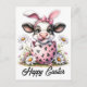 Cartão Postal Vaca de Páscoa de Aquarela Adorável no Ovo