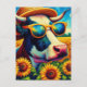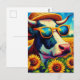 Cartão Postal Vaca em óculos de sol em campo de girassol