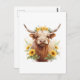 Cartão Postal Vaca Highland com Flor Amarelo de Girassol
