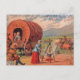Cena ocidental de pessoas com um vagão coberto acampando ao redor de um incêndio no acampamento. De um anúncio de uma velha companhia de especiarias