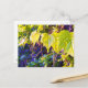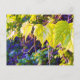 Folhas de uva suntuosa e palhetas delicadamente enroladas fazem uma imagem impressionante sobre uma paleta de fundo de azul, roxo, rosa e verde.