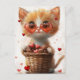 Cartão Postal Valentine's Day Ginger Cat Basket Hearts