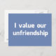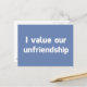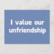 Às vezes postamos coisas que nossos amigos não gostam e misteriosamente eles te desamedrontam. Não que sejamos amargos, mas que lhes enviem um postal para lhes dizer o quanto você valoriza a sua amizade! *Nossos produtos são apenas para fins cômicos e não são destinados a interromper ou arruinar relações. Embora alguns de nós possam ser amargos... no final do dia são as redes sociais.* Sim, ainda somos amargos. grrr.