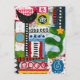Vamos dançar é uma colagem colorida de mídia mista com toneladas de formas diferentes, listras, círculos, estrelas, flores e muito mais.