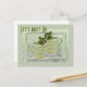 Economize selos e envelope/papel quando enviar um cartão postal. O design da capa inclui fotografias alteradas digitalmente de duas xícaras de chá em forma de espiral verde com ramos de hortelã saindo do topo. Personalize o texto do modelo, remova o texto ou clique em personalizar para selecionar um estilo de fonte, tamanho e cor de sua preferência.
