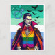 Vampiro vestindo cores do Sinalizador Arco-Íris, com um Sinalizador do Orgulho Male Gay como fundo.