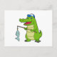 Cartão Postal vara de pesca de pescador de crocodilo