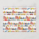 Uma ilustração desenhada à mão de veículos de transporte urbano, carros, camiões na estrada. Um design multicolorido com carros da cidade, camiões de construção, tratores, autocarro, carro da polícia, camião do lixo, camião de bombeiros e muito mais. Um design ideal para quarto de crianças, sala de brincar e decoração de berçário. Um tema de aniversário de veículos de transporte urbano infantil e presente personalizado para quem ama transporte, veículos, carros, camiões e ilustrações desenhadas à mão.