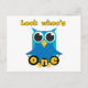 Camisetas de aniversário do bebê design da coruja, fatos-chave, canecas, ímanes, cartas e muito mais com texto que diz "Olha quem é 1"!