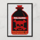 Garrafa com crânio e ossos cruzados diz "Religião" e por baixo "aviso: o uso habitual causa ódio, intolerância e guerra interminável."