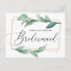 Cartão Postal Verde aquarela. Você será minha dama de honra?