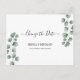 O moderno e elegante design impresso Greenery Eucalyptus deixa uma mudança de data Cartão postal que pode ser personalizado com seu texto. Clique no botão "Personalizar" e use nossa ferramenta design para modificar este modelo. Veja a Design de Arte Gráfica para outros produtos que combinam com este design!