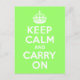 Design verde-claro "Mantenha calma e continue" em cores modernas.