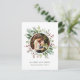 Este postcard de Natal | Férias apresenta eucalipto aquarela pintada, folhas verdes, bagas vermelhas, ramos de pinheiro com uma foto circular. Para personalização mais avançada deste design, clique no link "personalizar ainda mais". Itens correspondentes também estão disponíveis.