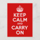 Cartão Postal Vermelho Clássico e Branco Manter Calmo e Continua