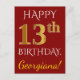 Cartão Postal Vermelho, Faux Dourado 13 Birthday + nome personal