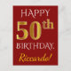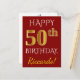 Cartão Postal Vermelho, Faux Dourado 50º Aniversário + Nome Pers