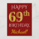 Cartão Postal Vermelho, Faux Dourado 69º Aniversário + Nome Pers