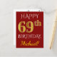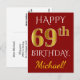 Cartão Postal Vermelho, Faux Dourado 69º Aniversário + Nome Pers