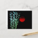 Bambu-árvores e sol vermelho em círculo negro e redondo desenhado à mão com tinta na tradicional pintura japonesa