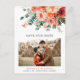 Celebre seu dia especial com esta elegante foto, salve o cartão-postal, com um belo design floral de aquarela em pêssego mole, coral e tons de pincel. Perfeito para um tema romântico, inspirado no jardim. Para personalização ou outros produtos com este design, por favor, sinta-se à vontade para entrar em contato comigo.