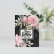 Cartão postal de aniversário com escrita inspiradora da escritura descreve bela aquarela rosada, flores cor-de-rosa e folhagens com um fundo preto. O verso apresenta uma parte dos versículos da Bíblia Números 6 24-26, "O Senhor te abençoe e te guarde; O Senhor faça brilhar o seu rosto sobre ti, ... e te dê paz." _
