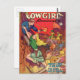 Uma vaqueira de vestido verde tem uma ligação próxima.