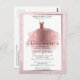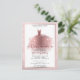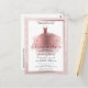Este convite de Quince Anos apresenta um lindo vestido rosa dourado com detalhes de diamante e texto personalizável em um fundo de mármore rosa suave. Perfeito para convidar os convidados para a sua celebração especial de 15 anos.