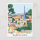 Cartão Postal Viagem de Espanha de Barcelona com Aquarela Retroa