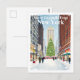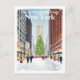 Capture a magia de um Natal em Nova Iorque com este lindo e personalizável cartão postal! Esta encantadora design apresenta uma ilustração original de aquarela de uma cena clássica de rua Nova Iorque, completa com uma lindíssima Árvore de Natal e neve suave. Ele evoca o sentimento clássico de viagem de feriado e é perfeito para enviar desejos calorosos da Grande Maçã.