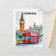 Cartão Postal Viagem de ônibus pela Londres Reino Unido Aquarela