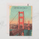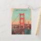 Este cartão-postal viagem, em estilo de ilustração digital, é inspirado pela Ouro Gate Bridge de São Francisco, CA - EUA.