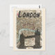 Qualquer um adoraria receber este cartão postal com viagem retro com uma ilustração de um mapa e a Ponte Torre em Londres, Inglaterra!