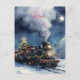 Uma locomotiva a vapor viagem através de um terreno nevado sob um céu noturno estrelado, enfeitada com luzes de férias e uma árvore de Natal, criando uma atmosfera mágica de inverno. Se você precisar de personalização ou itens correspondentes, entre em contato comigo.