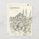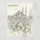 Este cartão-viagem, em estilo desenhado à mão, mostra uma vista do bairro Sultanahmet de Istambul.
